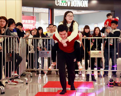 作為38女王節(jié)的壓軸大戲,“奔跑吧!男神!”于3月8日在奧園廣場東中庭熱辣上演。當(dāng)天,凡購物滿388元即可挑選男神與你一起闖關(guān)玩游戲贏大獎!現(xiàn)場8位“男神”隨時待命,任女王挑選一起闖關(guān)。當(dāng)然,如果女王們還有老公、男友等自備“男神”,也是可以一起玩的哦!活動從下午開始到晚上8:30,吸引了許多“女王”踴躍參加,于是男神們一直忙碌不停。值得一提的是,活動當(dāng)天,女性顧客任意消費即可免費領(lǐng)取星巴克咖啡券一張,女王節(jié)這一天,吃喝玩樂節(jié)目豐富,讓女王們樂不停。